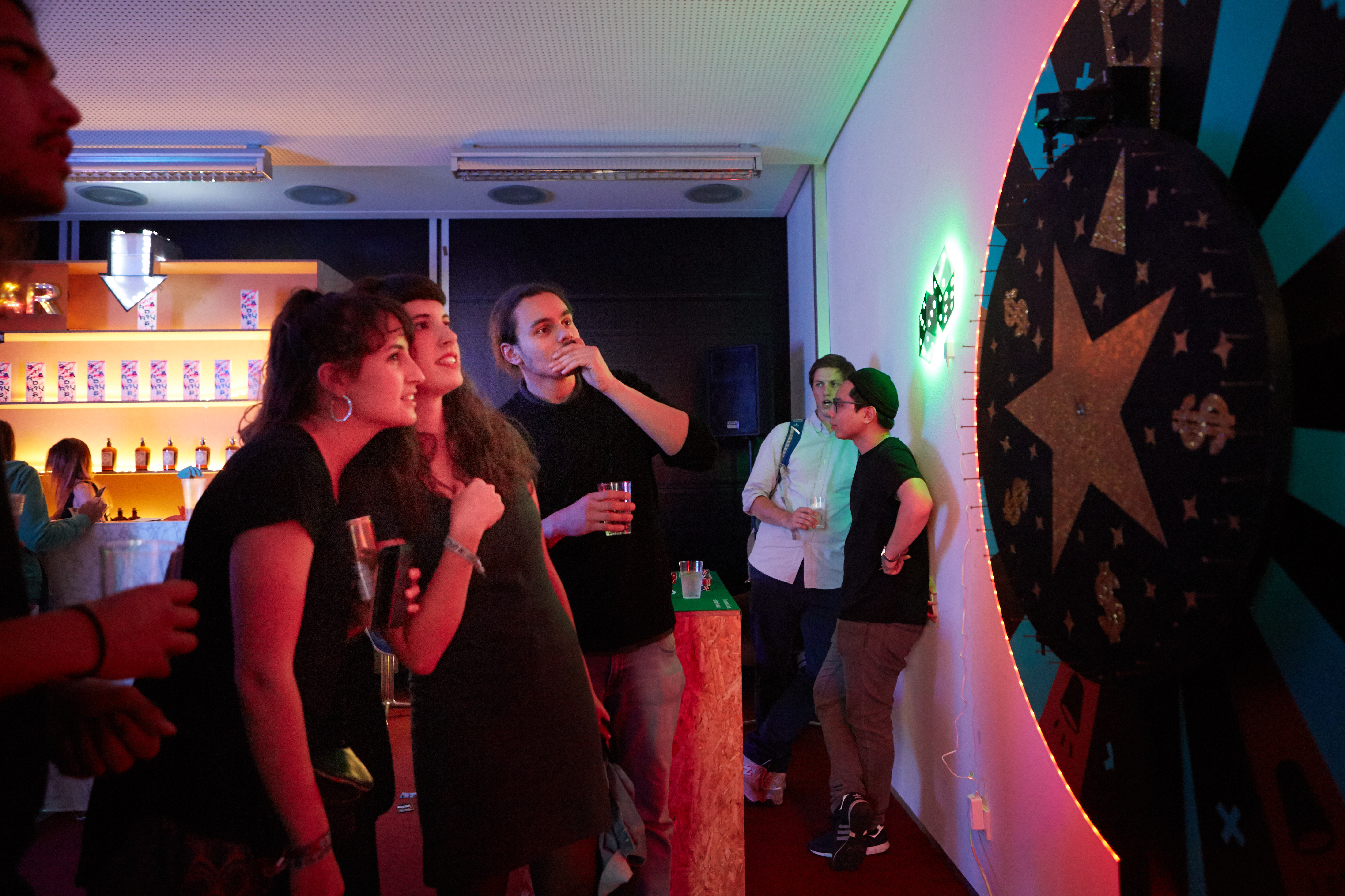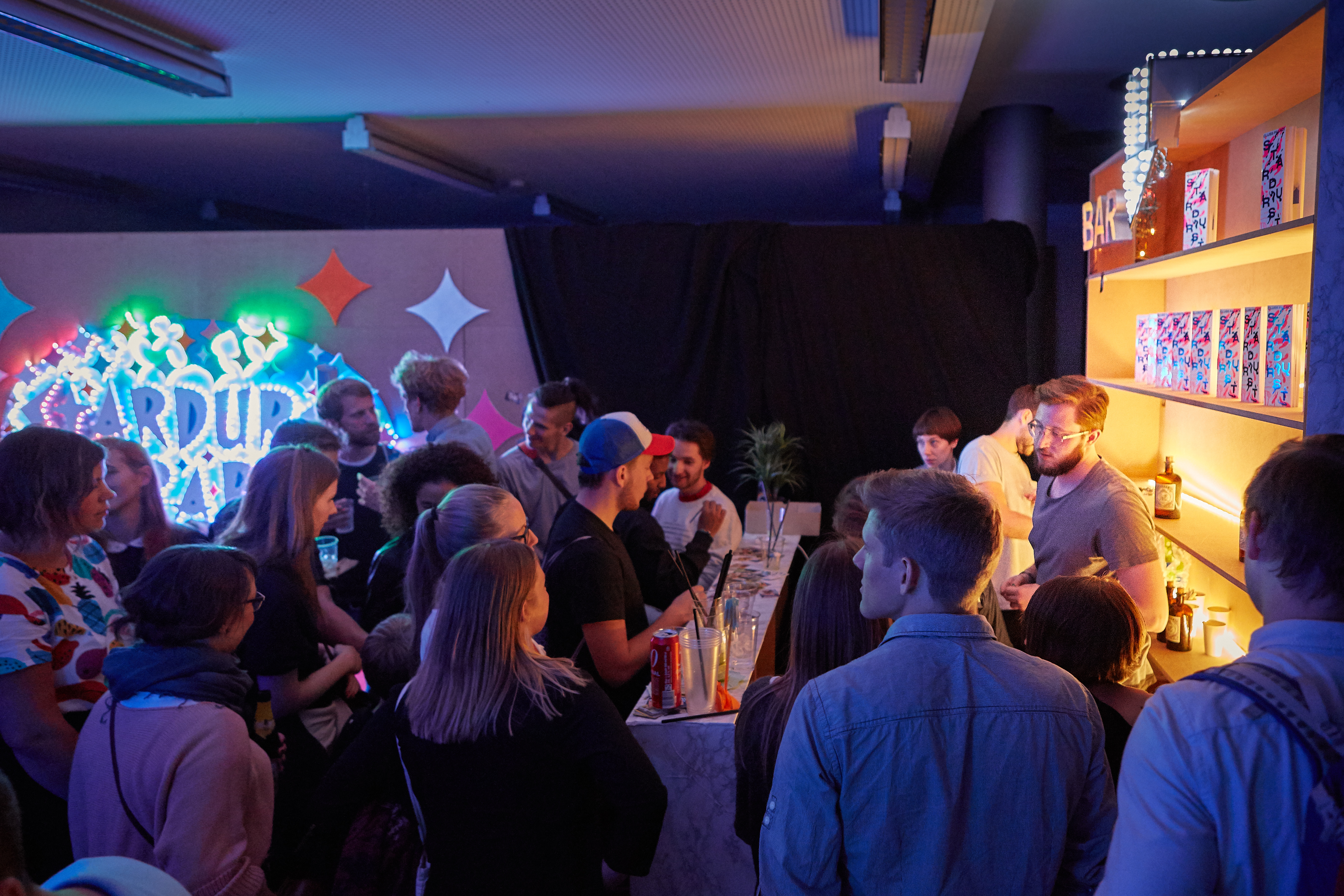 Rauminstallation der Klasse zum Rundgang der Staatlichen Akademie der Bildenden Künste 2016. Nach einer Vorangegangenen Exkursion nach Nevada und Kalifornien befasste sich die Klasse typografisch und rauminstallativ mit Themen des nordamerikanischen (mittleren) Westen. Dabei entstanden ist die Stardurst Bar, die gemeinsam mit gedruckten Vegaskärtchen-Flyern für viel Aufmerksamkeit gesorgt hat.